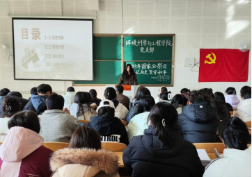为深刻领会国家公祭日的精神内涵,引导党支部全体成员增强历史意识,坚定和平信念,环境科学与工程学院党支部于2024年12月20日在南教学楼 118 教室开展开展“铭记历史,珍爱和平”国家公祭日主题党日活动,党支部全体成员参加此次活动。