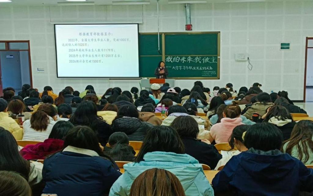 裴老师在大学生职业规划讲座中,借助精确数据,深入剖析就业形势,分析了不同行业的发展脉络、热门职位的人才需求及薪酬趋势等要素,使学生对职业环境形成全面认知。在核心环节,裴老师讲解规划步骤,引导学生自我评估,形成个性化规划。期间,裴老师对学生们关于就业方向、实习选择等多方面的疑惑进行耐心解答,给出针对性策略。