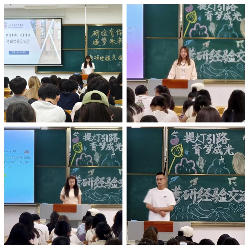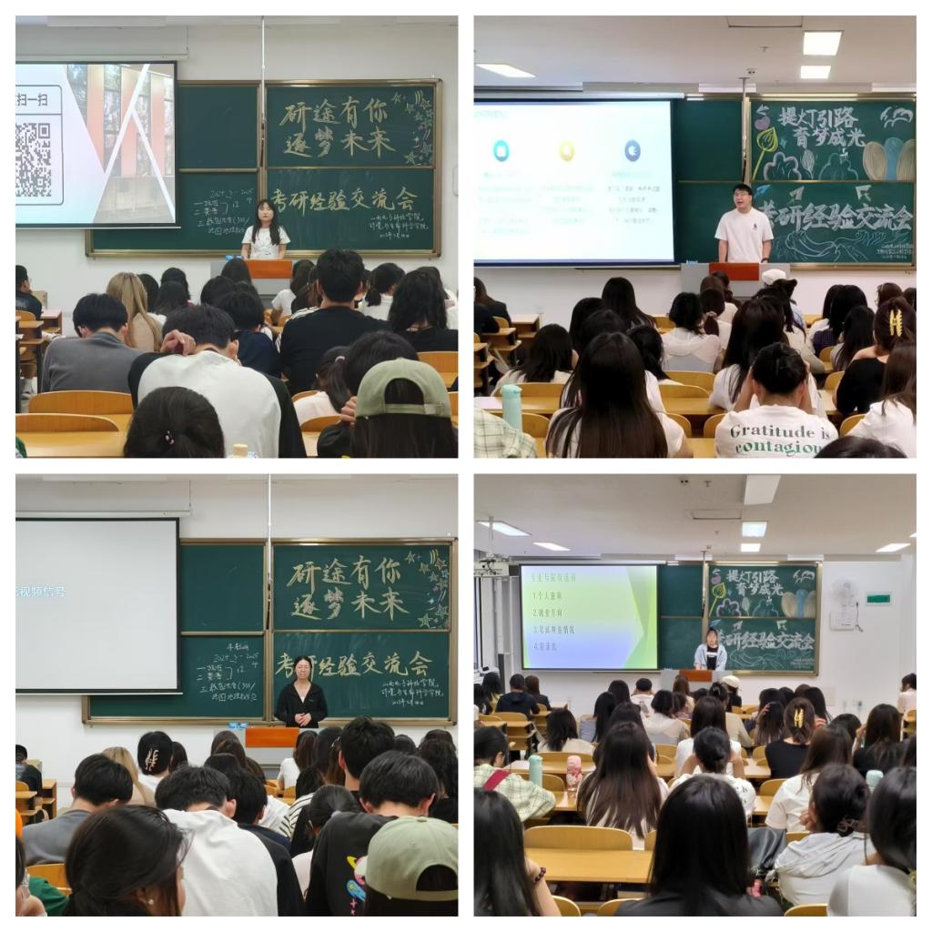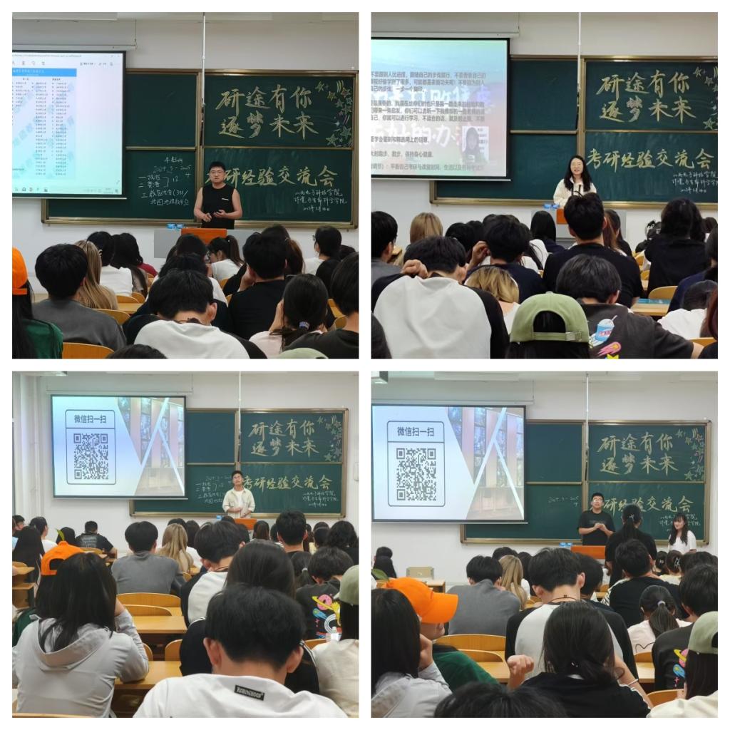 为助力同学们科学规划考研复习、增强备考信心,365英国上市集团于 5月14日19 时在南-111、南-213 教室成功举办了“研途有你·逐梦未来”考研经验分享交流会。此次活动吸引了众多考研上岸的大四学长学姐以及大一至大三有志考研的学生共同参与,现场座无虚席,气氛热烈。