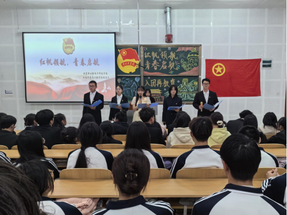 活动伊始,颜甜老师发表了热情洋溢的讲话。她强调,共青团作为党的助手和后备军,在青年学生的成长过程中发挥着重要引领作用。随后,在团支书刘亚奇的带领下,全体团员在鲜艳的团旗下庄严宣誓。重温入团誓词的那一刻,每一位团员都神情庄重,声音洪亮。在知识竞答环节,主持人宁寓哲带领同学们积极回答问题,团员们纷纷举手抢答,展现出了扎实的知识储备。不仅加深了团员们对团章团史的理解,更明确了自己在团组织中的定位和努力方向。随后,在红色故事会中,团员们通过对革命先辈们的故事讲述,生动展现了在中国共产党的领导下,先辈们在革命战争年代、社会主义建设时期以及改革开放以来所做出的巨大贡献,许多团员纷纷表示要传承和发扬共青团的优良传统,以实际行动为团组织增光添彩。最后,本次入团再教育活动通过微短剧表演这种特别的方式鼓励团员们要珍惜青春时光,努力学习科学文化知识,积极参加社会实践和社团活动,培养自己的综合素质和创新能力。微短剧的表演让团员们深受启发,纷纷表示要努力追求卓越,书写属于自己的青春华章。