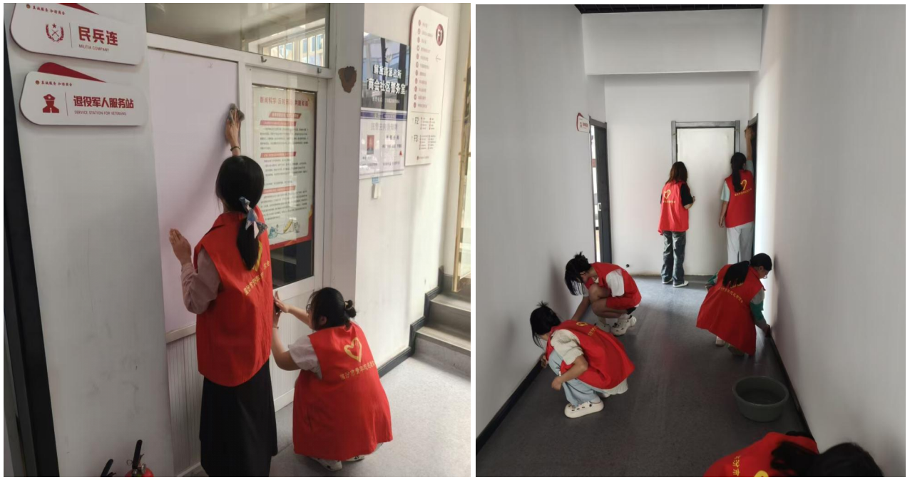 活动当天,志愿者们身着统一服装,携带清洁工具,以饱满的热情投入到工作中。在负责人的统筹安排下,大家迅速分组行动。负责清扫组的志愿者们手持扫帚、簸箕,对办公厅、走廊、会议室等区域的地面进行全面清扫;擦拭组的志愿者则用干净的抹布,搭配清洁剂,仔细擦拭办公桌椅、服务柜台、宣传栏、窗户玻璃等设施;整理组的志愿者对杂乱的文件资料进行分类归档,重新规整摆放,使办公区域更加井然有序。此外,志愿者们还对储物间等容易忽视的区域进行深度清洁与消毒,确保整个党群社区屋内的环境既干净又安全。现场气氛热烈,众人干劲饱满,以认真的态度逐步使党群社区的室内环境焕然一新。