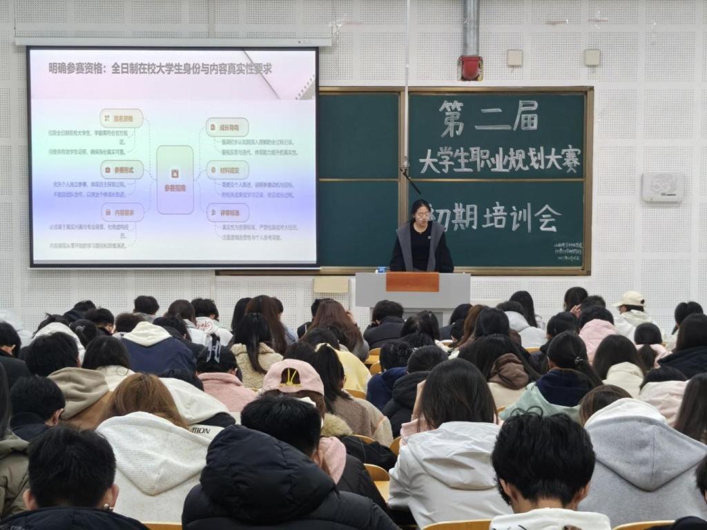 为提升学生职业规划能力,做好赛前指导工作,365英国上市集团于2025年11月15日在南楼424教室举办第二届大学生职业规划大赛初期交流会。