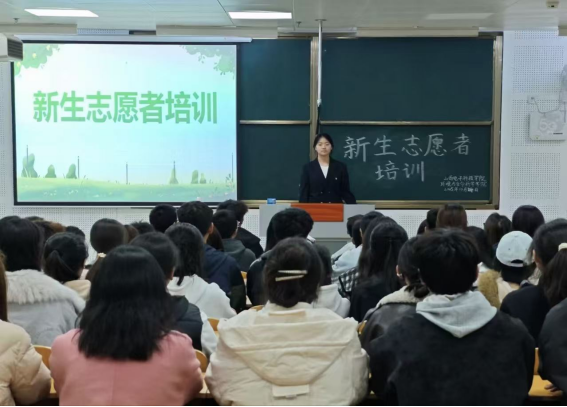 培训伊始,学院志愿服务负责人以图文并茂的PPT为载体,系统解读了学院志愿服务活动的规章制度,从服务流程规范到纪律要求,层层递进、清晰明确。讲解过程中,负责人着重强调了志愿者的责任担当与服务礼仪, 让新生对“奉献、友爱、互助、进步”的志愿精神有了更深刻的理解。